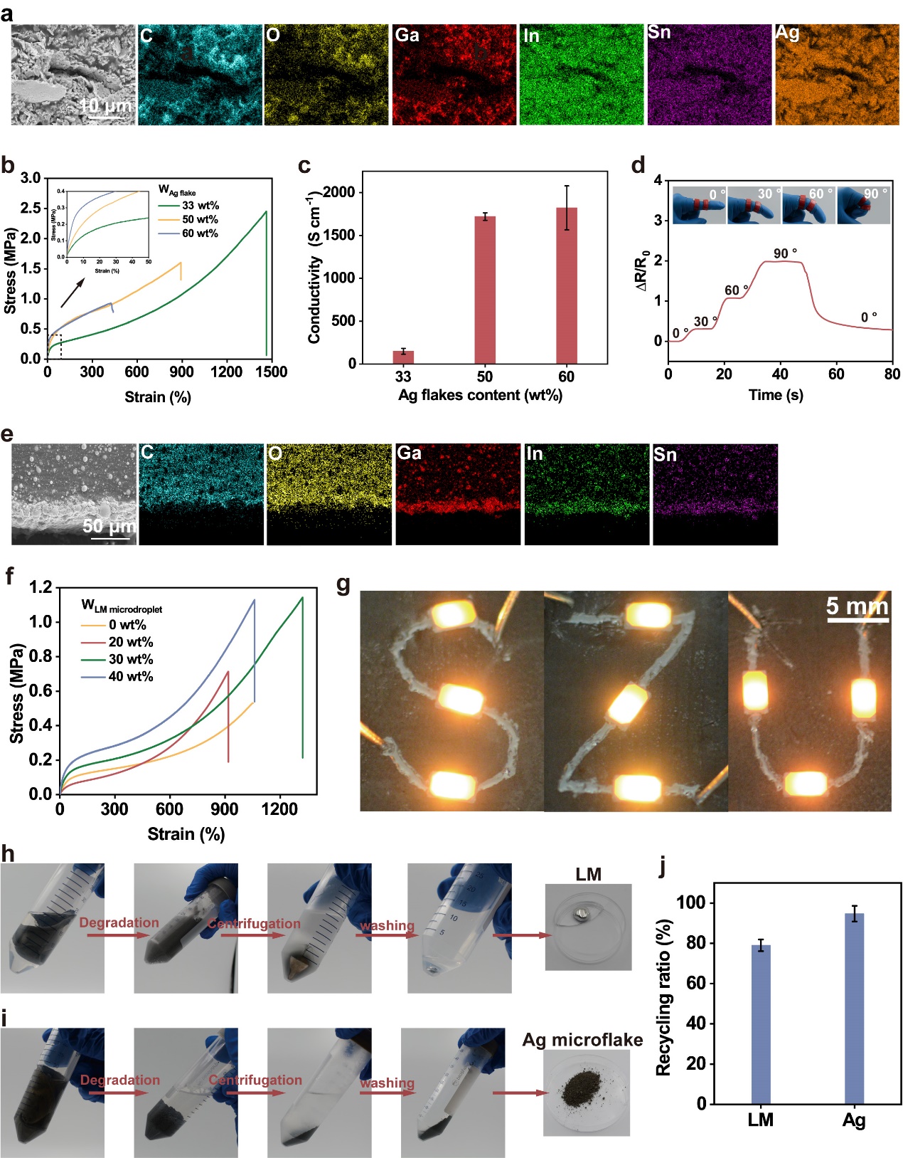 Recently, Professor Xuechang Zhou’s research group from the College of Chemistry and Environmental Engineering, Shenzhen University, reported the research progress about the synthesis of degradable and recyclable conductive polymer composites in the journal Advanced Functional Materials. This work is entitled “Highly Stretchable yet Degradable and Recyclable Conductive Composites with Liquid Metal Nanodroplets as Physical Crosslinks”. Dingling Zhong, a postgraduate student, is the first author, and Prof. Xuechang Zhou and Dr. Tiansheng Gan are the corresponding authors.